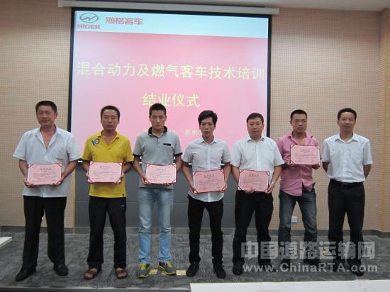 今年二季度,海格客车以“请进来、走出去”的培训方式,先后为苏州公交、昆山公交、苏汽集团、镇江江天集团、内蒙古呼运集团、烟台交运、新疆安吉达运业等客户进行CNG、LNG清洁能源车型培训20多场次,共有800多位学员参加了培训,为正确操作使用、维护、保养燃气客车发挥了重要作用。7月10日~12日,海格客车又在苏开办了“混合动力和天然气客车维修技术培训班”,26家集团客户和服务站共计40余名学员参加了培训。