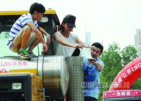 与普通重卡相比,它们身上多了个大气罐,它们不用“喝油”,大气罐里装着450升液态天然气,与柴油相比每升可省3元,跑长途年省15万元油钱。现场一位女士用白色餐巾纸放在重型卡车排气管上,20分钟过去还是白的!在场的一位江苏紫峰公司工程师解释,由于天然气燃烧后没有颗粒,所以不会出现“黑尾巴”,确保“一路上天蓝蓝”。据透露,南京首座LNG液态天然气加气站昨天也在仙林地区启用,而这种重型卡车也有望在南京推广。