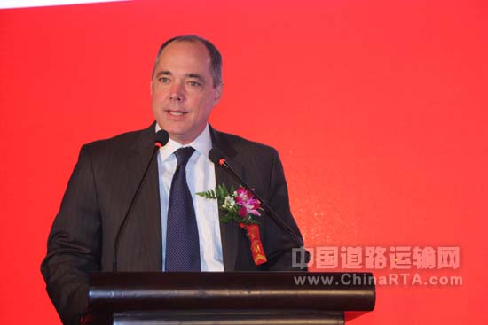 纳威司达卡车和发动机总裁Troy Clarke发表讲话