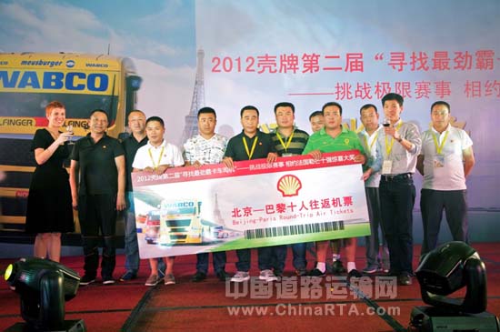 8月22日, 2012壳牌第二届“寻找最劲霸卡车司机”全国总决赛于珠海举行。赛事以“挑战极限赛事,相约法国勒芒”为主题,聚集了30位从全国各地前期路演活动中选拔出的优胜卡车司机,进行卡车驾驶技能比拼、劲霸故事会两个比赛环节的较量。最终,来自重庆的孟城获得冠军,来自辽宁的吴海及来自河北的王江涛位列亚军和季军,三位共同荣膺2012年中国“最劲霸卡车司机”的称号。今年10月,在本届赛事中排名前十的卡车司机将应邀同壳牌一起赴法国勒芒观看由其冠名赞助的欧洲卡车锦标赛,将中国卡车司机的“劲霸精神”带出国门。