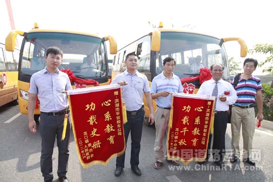 洪湖市委市政府及相关教育部门非常重视校车的安全运营工作,2011年即作为8个县市代表之一参加国务院《校车安全管理条例》意见座谈会。此次由市政府统一采购、更换符合国家标准的小学生和幼儿园校车,让孩子们的上学之路不再艰辛,为祖国未来的健康成长铺平一条安全、畅通的道路。9月1日,“开往希望田野的校车”整装待发,即将开赴各级学校,让洪湖市 10000多名农村孩子坐上安全放心车。