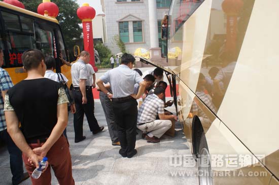 在举行的恳谈会中,与会嘉宾共同印证了近年来中通客车突飞猛进的发展,对中通客车近年来的技术创新给予了充分的肯定。对中通提出的“以科技引领节能”的观点给予了充分肯定,客户一致认为中通节能技术为客户带来明显的实际效益。在观看巡展车辆的过程中,各位嘉宾就如何更加经济的运营车辆,节约燃料进行了广泛的交流。烟台运管处副处长汤跃祥、烟台交运机务处长吴国芳分别作了代表发言。
