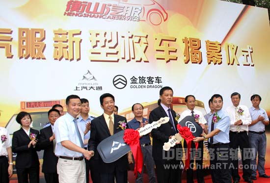 2012年8月31日下午,“衡山汽服新型校车揭幕仪式”在上海衡山马勒别墅酒店隆重举行。40辆配置先进、符合国家校车安全标准的“大鼻子”校车——“厦门金旅”和“上汽大通V80”在上海被首次交付使用。据悉,如此高规格、高数量的校车交付,在上海地区尚数首次。上海市城市交通运输管理处副处长马斐先生、上海市出租汽车暨汽车租赁协会秘书长石景明先生、衡山集团副总裁(衡山汽服董事长)潘召章先生、厦门金旅旅行车有限公司副总经理彭东庆等领导出席了仪式,共同见证了衡山汽服校车服务的新起点。
