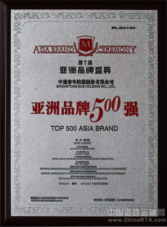 成功的品牌的打造不是朝夕之功,而是在企业长期发展过程中建立起来的,并且还要不断适应和引领时代发展。作为国内重点客车制造企业,管窥中通客车近年来的跨越式发展,不难发现以打造中国节能与新能源客车领导品牌为核心的品牌建设,已逐渐把中通客车品牌悄无声息的渗入行业各个角落,品牌所焕发的蓬勃活力正成为中通客车发展的一枚利刃,也将中通客车推向了更高的品牌峰台。9月9日,第七届亚洲品牌盛典隆重召开,中通客车在企业发展和品牌建设方面的突出表现,赢得了在场专家的一致赞扬,中通客车副总经理宓保伦代表公司参加了这一盛大典礼,中通客车与韩国三星、日本索尼、中国移动等一起荣获“亚洲品牌500强”称号,同时,中通客车还获得“中国品牌成长冠军”大奖,中通客车登上了更高的国际化品牌发展平台。