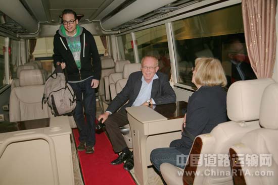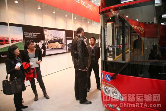 安凯客车参展的两款车型其市场诉求非常明确,主打欧洲的高端商务车市场和高端旅游客车市场。在汉诺威的安凯客车展台,最为醒目的就是红色的安凯双层敞篷观光客车HFF6110GS-1,车身上巨大的“中国”两个大字,在整个展区显得尤为醒目。