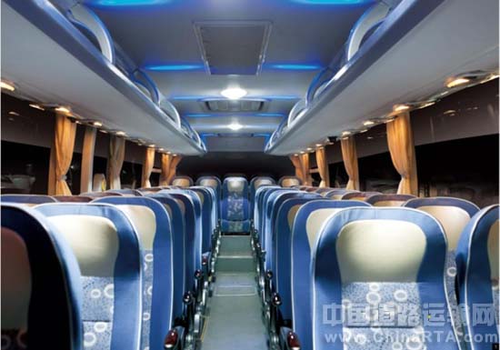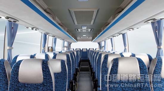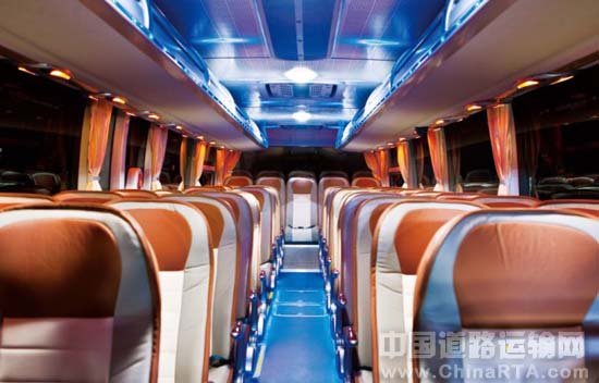 10米系列客车均采用绿色环保的复合阻燃材料,提升了车辆的被动安全性能。同时,空调增加了换新风功能,在压缩机不启动的情况下,可以启动空调换新风功能,轻松实现车内换气,既节能又能保持了车内空气的清新自然。另外,该车创新应用了隔声材料和吸声材料,怠速噪声为61.9分贝,远低于行业65分贝的水平;平顺性指数为114.1分贝,比行业水平118分贝低将近4分贝,乘客的乘车舒适度将大大提高。