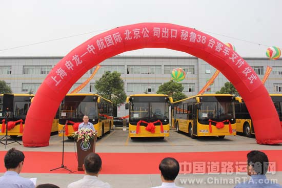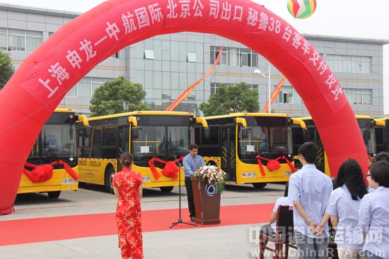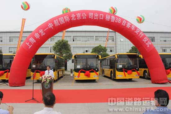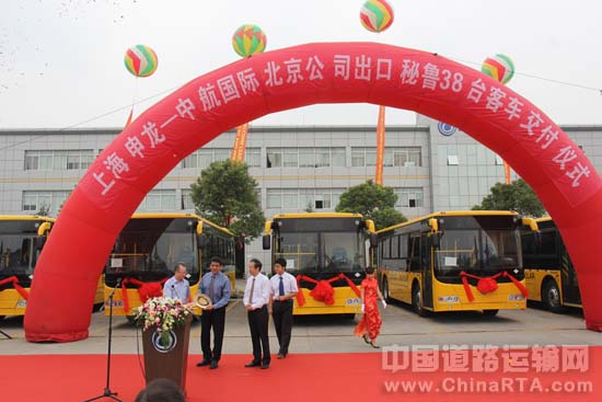 日前,上海申龙-中航国际北京公司出口秘鲁38台客车交付仪式在申龙客车厂区隆重举行。秘鲁海军上校Juan Francisco Zúñiga Escudero,秘鲁驻上海领事馆副领事Mr. Enrique Descalzi,中航国际北京公司党委书记李进、副总经理邹康宁,闵行区经委主任蔡潇飞,莘庄工业区党工委副书记、总经理陈建平以及申龙公司常务副总经理张嘉宇、副总经理黎明、赖雪凤等公司领导出席了此次活动。