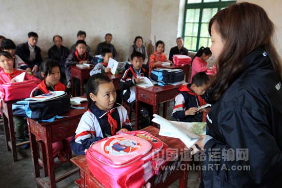 这是超级卡赛组委会第二次来到这个小学,去年在奉节举办比赛的时候,偶尔发现了这个深山里的小学,当时给小学捐赠了学习和体育用品,以及电视电脑等电器设备,并由此推出了“卡卡爱心小书包”系列公益活动。今年,伴随着超级卡赛的脚步,“卡卡爱心小书包”活动已经到过了湖南新田、陕西榆林、山东招远的三所小学。