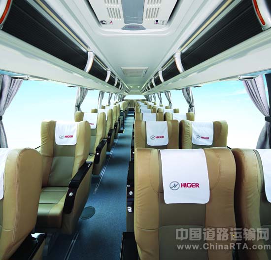 仪表采用炮筒式,能够在强烈的光线下依然获得清晰的车辆状态读取。大量采用LED光源,提高耐用性。车顶的空调风道经过全新设计,车头部位的整体成型顶内预置了空调风道,在司机位和导游位共安装了10个出风口。提高了驾驶员位置的舒适度,也避免了过去后面温度低得乘客受不了,前面驾驶员依然大汗淋漓的窘境。