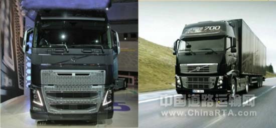 沃尔沃新款FH系列重卡(左)与旧款FH重卡(右)