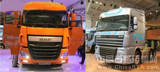 达夫DAF XF欧六新款重卡(左)与旧款DAF XF重卡(右)