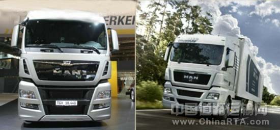 德国曼新一代MAN TGX(左)与旧款MAN TGX(右)