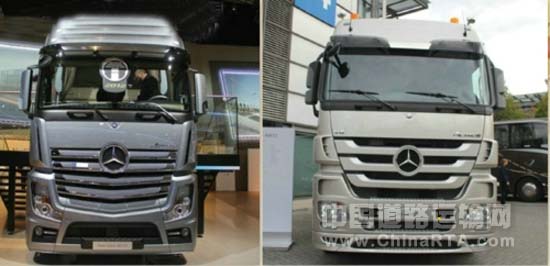 奔驰新一代Actros重卡(左)与旧款Actros重卡(右)