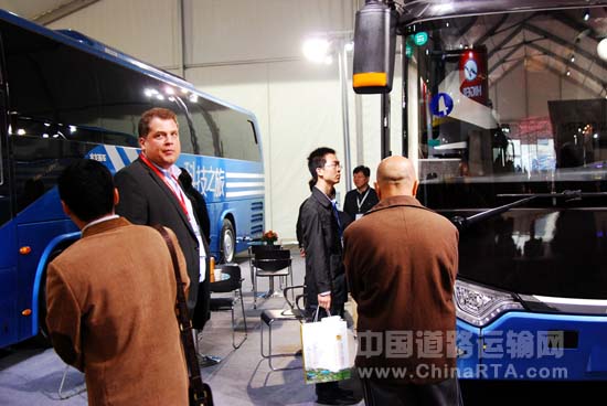 展会现场,来自世界各地的参观商,对大金龙新一代客车产品采用的科技手段和智能化设计,表现了极大的兴趣。
