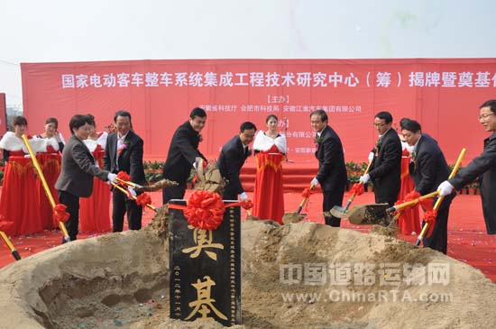 2012年11月19日,“国家电动客车整车系统集成工程技术研究中心”在安徽省合肥市安凯客车新能源汽车新基地,举行了隆重的揭牌和奠基仪式。安徽省经信委、科技厅,合肥市发改委、经信委、国土资源局、规划局、科技局、环保局,合肥市包河区政府、包河工业区,以及江汽集团、安凯客车的主要领导出席了本次活动。合肥市委常委、副市长韩冰和省国有资产监督管理委员会副主任项小龙共同为中心揭牌。