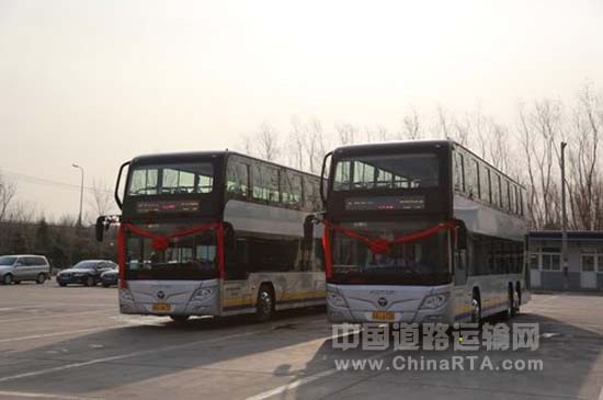 配图:福田欧辉双层LNG公交在此次仪式上备受瞩目