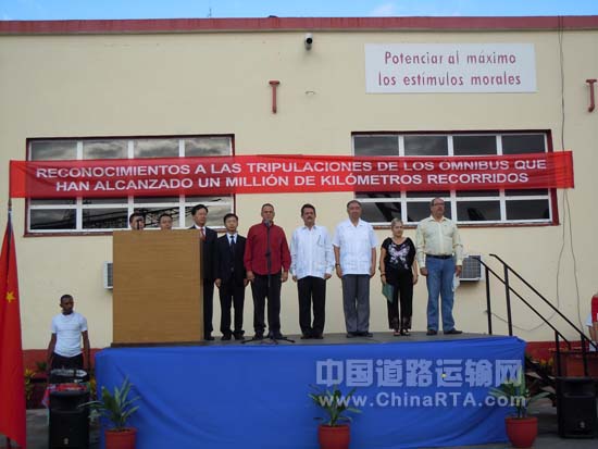 近日,宇通客车联合古巴国家客运公司在古巴首都哈瓦那举行了宇通客车运营至100万公里庆祝活动,并对古巴国家客运公司的优秀司机进行了颁奖表彰。古巴交通部第一副部长Raúl Perez、古巴国家客运公司总裁Roberto Ricardo Marrero、中国驻古巴大使张拓、宇通客车海外市场部部长胡锋举共同出席了此次活动。
