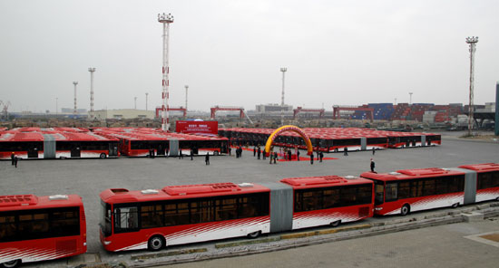 2012年12月19日,“金龙客车 荣耀远航——300辆18米BRT客车出口伊朗交车仪式”在厦门现代码头隆重举行。