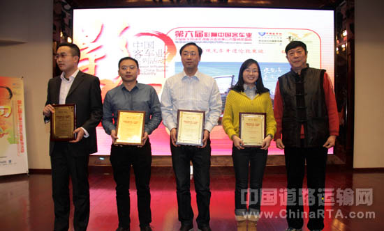 申龙客车行政总监陶荣华先生(中)上台 领取“行业十大新闻”奖