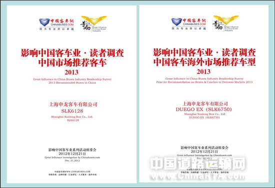 SLK6128、SLK6750分别荣获2013年度国内与国外市场推荐客车
