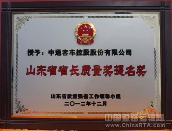 中通客车荣获“2012年度省长质量奖提名奖”(图文)