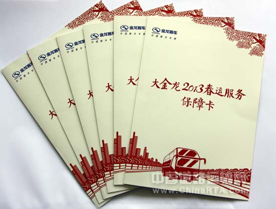 据了解,从1月份起,大金龙全国各地的驻外服务人员深入各客运公司走访,协助客户对车辆进行安全排查,杜绝车辆带病上路、消除安全隐患;为防止春节期间物流不畅,公司提前在全国各地备件经销商的库存基础上补充投入了400多万元的备件,保证常规备件2小时送达,厦门总部还开通“绿色通道”,紧急备件可直接调货,采取空运方式,确保24小时内送达;为确保客户服务需求及时得到满足,还特别印制了数千份《2013春运服务保障卡》,向用户提供服务热线、服务举措等信息,提前下发到广大客户、车主手中,公司售后服务热线也将24小时开通,随时服务。