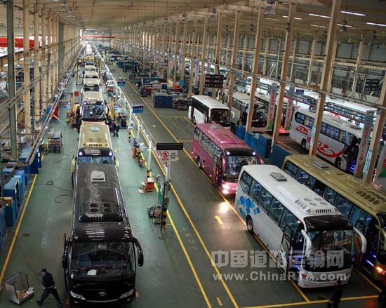 在大中客总装车间,记者看到生产线上已排满订单车辆,其中大巴生产线上一批外观靓丽的旅游客车格外引人注目。大金龙海外销售部非洲区经理许立滨介绍,这批出口厄立特里亚的55辆客车,是继去年2月90辆大金龙公交、旅游客车交付厄立特里亚之后,斩获的又一批量订单。