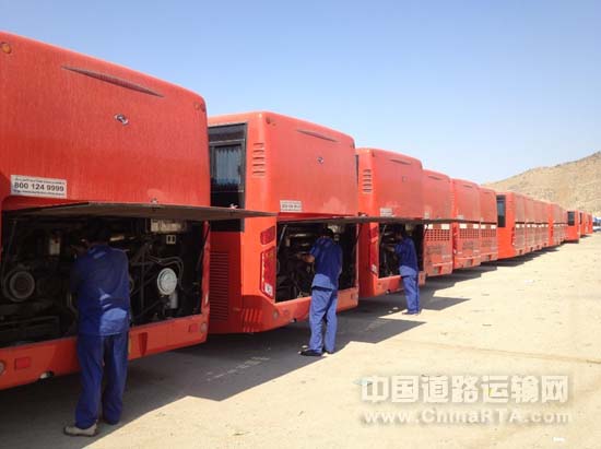 大金龙海外服务工程师在朝觐前夕对每一辆车进行认真检查