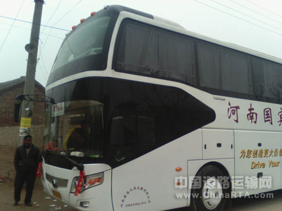 “好家伙,车上还挂着红布条,肯定是新车”,看着这辆即将运送自己和老乡前去苏州打工的崭新客车,村民井四满心欢喜的说道。驾驶员王师傅从车上走下,接过了他的话茬儿聊了起来:“年前二十七刚从宇通公司提的车,这不刚过年,头一趟就接了你们的包车业务。这两年我们鑫海(河南鑫海交通运输有限公司)发展不错,买了不少宇通豪华旅游客车,今天咱们要乘坐的这辆旅游客车有59个座位呢,保证每人都有座,让你们一路舒舒服服的到达苏州。”