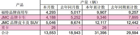 特别值得注意的是,截止到2013年1月江铃的产销数据没有重卡项,2013年2月产销开始增加重卡数据。