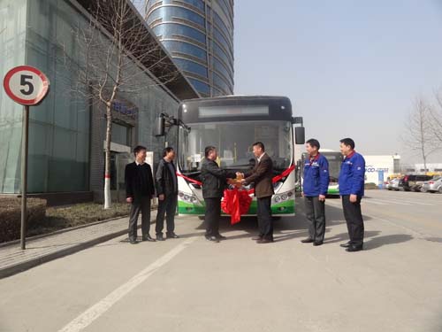 3月7日,保定市采购的298辆宇通混合动力公交车首批50辆发车仪式在郑州宇通工业园举行。宇通客车销售公司总经理钱瑞瑜将代表着这批车的金钥匙,交到保定市公交总公司机务副总王立业手中,宣告了这批新能源公交车正式交付。据了解,剩余248辆车也将在近日分批送达保定公交。