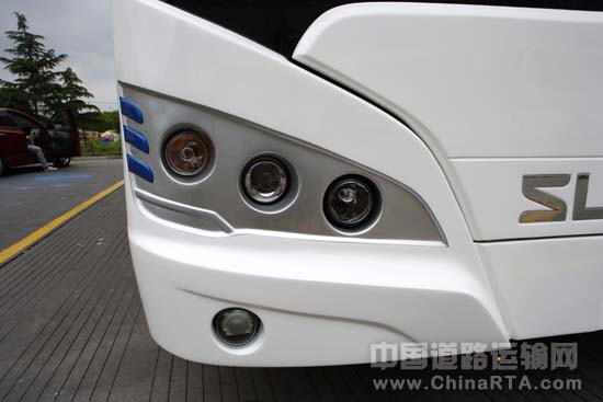 远远地望去,申龙SLK6129USCHEV01白绿两色的搭配给人一种清新的感觉,彰显出混合动力车型环保清洁的设计理念。整车车身采用欧系方基调、小圆角、薄顶结构,流线型车身凸显出简洁的气质。从正面观察,前脸造型稳重大方,侧面观察又会发现其设计极富立体感,透露出动感活力。前挡玻璃采用流线型双曲面设计,一方面降低了风阻系数,另一方面也保证了司机开阔的驾驶视野。前车灯采用集成式设计,鹰眼式框架下进行独立排放,增加了前脸的立体感。后视镜与下视镜组合也相当简洁大气。车尾造型稳重,凸显出高贵气质,尾灯线条简洁大方,水晶质灯罩不但保证了照明度,还提高了耐用度。