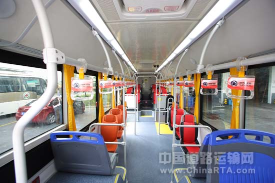 进入申龙SLK6129USCHEV01车内,温馨的色彩搭配营造出整洁清新的氛围,红色的皮椅增加了热情的气氛。铝合金扶杆和亚麻风道带弥漫式空调出风口都满足了混合动力客车轻量化设计需求。此外,该车在不同部位设置了很多标识,可帮助和指导用户以及乘客更好地利用相关设备,凸显出人性化设计。