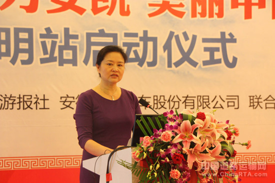 安凯客车副总经理汪先锋在仪式上发布《“推广绿色出行 共建美丽中国”倡议书》