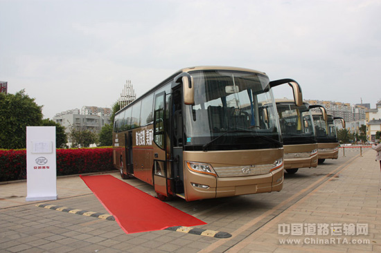 “安凯美丽中国行”启动仪式外展览的安凯最新旅游客车