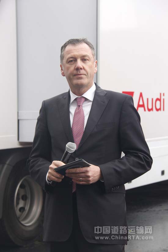 德国曼中国区销售总监Michael Dong介绍揭幕车辆