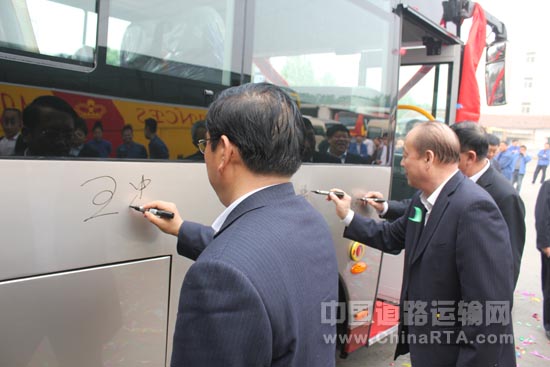中国道路运输协会会长杨利民,聊城市委副书记、聊城市人民政府市长王忠林,山东省交通运输厅副巡视员路康,中通客车控股股份有限公司总经理孙庆民等各位领导共同出席了本次下线仪式,见证这一历史时刻。