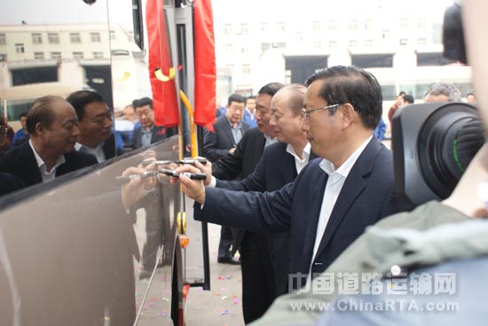 下线仪式由中通客车副总经理贾开潜主持。中通客车技术总监王钦普向与会领导与嘉宾详细介绍了该产品的各项性能及技术特点、中通客车在新能源客车领域的研发情况及下一步的发展规划。随后,与会领导共同为“国内首款可插电式同轴并联混合动力客车”产品揭幕,并一同在车身上签字留念,随后,与会领导纷纷登车,进行参观、体验。针对该款产品,中通客车技术总监王钦普向登车领导做了详细地技术讲解,该产品卓越的性能及技术优势赢得了中国道路运输协会会长杨利民及聊城市市长王忠林的高度赞赏。杨利民会长称赞中通客车在国内推出首款可插电同轴并联混合动力客车不仅是一种技术创新,同时,也是中国新能源客车发展史上的里程碑,引领了行业发展潮流,这是一种坚持不懈,追求卓越的创新精神,这种精神值得在整个行业内推广开来。