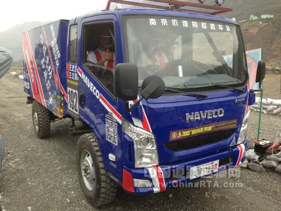 此次征战东川泥石流国际越野赛的南京依维柯超越车队共两辆赛车,是今年1月份刚上市的欧系高端自主产品,也是荣膺中国“2013年度轻卡”称号的轻卡产品。据悉,这款产品在上汽集团和意大利依维柯双方股东的全力支持下,经中外技术人员通力合作,斥资十亿专项资金,历时四年精心研发,利用正向开发理念设计制造的高端轻卡产品,在动力性、燃油经济性、多工况安全性、驾乘舒适性等方面具备极强优势。可靠的品质,卓越的性能是赛车完赛的基础保障,出于对车辆品质的自信,出于对市场负责的态度,此次参赛的赛车在原车基础上除赛事要求及适应赛道特点方面外,未作大幅度的改装(改装主要体现在车辆防滚架、专用赛车座椅、轮胎及涉水零部件等)。