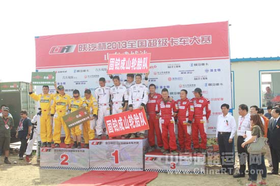 车队前三:第一名:固铂成山轮胎队,第二名:自由战士服饰队,第三名:华夏银行ETC卡车队