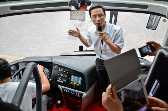 大金龙工程师陈晓冰博士为媒体详解“龙翼”车联网科技平台