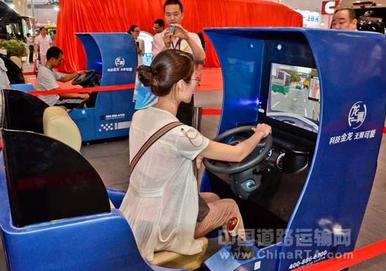 除了4款精品展车的亮相,配合大金龙自主研发的“龙翼”车联网科技平台的正式发布,展会现场还安排了两台“龙翼”模拟器,让与会客户和媒体记者可以通过新身体验的方式,直观深入地了解“龙翼”平台的强大功能,进一步传递“科技金龙”的理念。