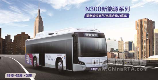 N300新能源系列——CKZ6116HNHEV5插电快充式气/电混合动力客车:具备世界领先的快速充电技术,采用同轴并联式混合动力系统,配备可快速高倍率(5C)充电,超长寿命的钛酸锂电池,采用公司独立研发的双枪快速充电技术,实现10分钟快速充电,充电更加快速、便捷;具有发动机驱动和电机驱动两套动力系统,能实现发动机独立驱动、电动机独立驱动、混合动力驱动三种运行模式;采用6档机械自动变速箱(ATM)和自动离合器,使整车操控轻便,在加速、爬坡等方面性能卓越,大幅度减轻了驾驶员的操作强度;AMT自动变速器与整车控制器通过CAN协调控制,实现整车性能最优化,车辆综合节能率达到40%以上,同时配装玉柴国V天然气发动机,整车环保节能、动力强劲,大大提升了驾乘舒适性。