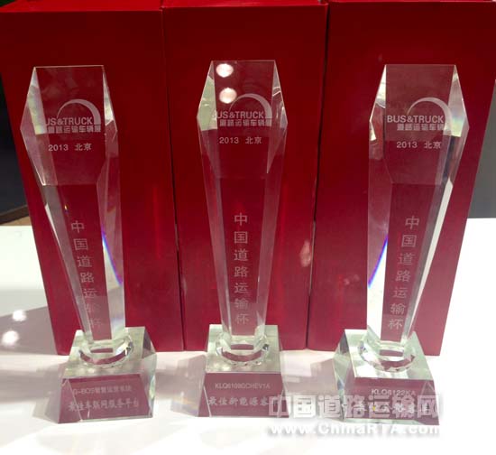 海格客车G-BOS智慧运营系统、KLQ6122KA节油型公路客车、KLQ6109GCHEV1A型插电式混合动力公交车分别荣获2013年度“中国道路运输杯”“最佳车联网服务奖”、“最佳公路客车奖”、“最佳新能源客车奖”等多项大奖。