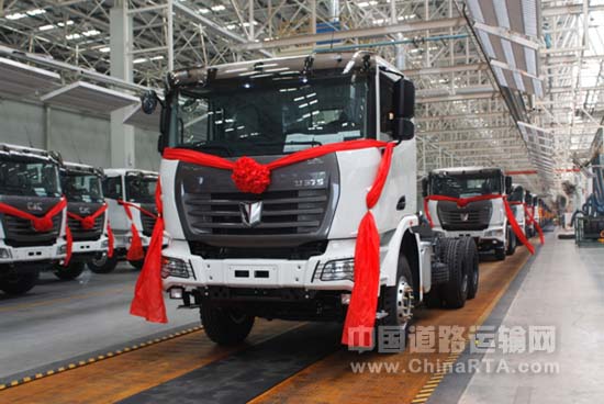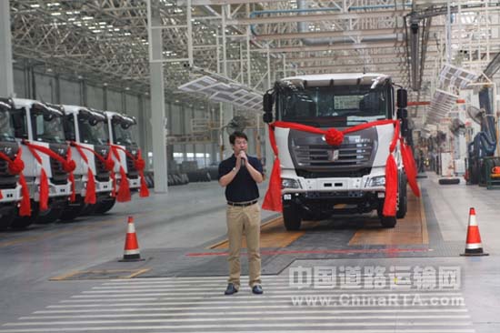 此次赢得玻利维亚政府采购订单的20台联合重卡缓缓驶出总装车间