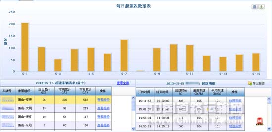 海格G-BOSⅡ代日看板中的超速次数报表