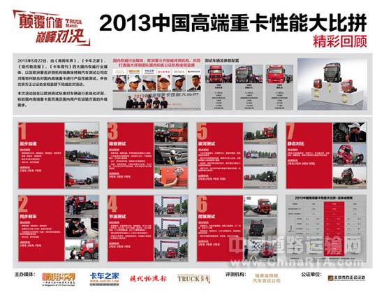“很欣喜的看到中国高端重卡,正在逐步接轨欧洲高端重卡,特别是福田戴姆勒汽车合资公司生产的欧曼GTL在节油、NVH指标、制动安全方面已经达到欧洲主流重卡的水平。”会议现场,由《商用车界》代表《卡车之家》、《现代物流报》、《卡车周刊》四大行业媒体和欧洲权威机构瑞典埃特姆汽车测试公司,对“2013中国高端重卡性能大比拼”结果进行了现场视频发布。“在全部的七项比赛中,欧曼GTL大获全胜。特别是在“节油测试”、“噪音测试”、“起步加速”、“爬坡能力”“制动能力”五个项目上优势明显”。让用户从第三方专业测评中的卓越表现,充分领略到欧曼GTL欧洲标准高品质重卡的低油耗、高舒适、高安全、高可靠等核心产品优势。