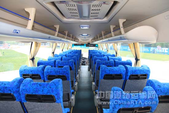 该车长宽高为12000×2500×3610mm,坐上座椅,柔软度很好,靠背的腰部支撑也很到位,座椅头部两侧凸起支撑的高度也较其他车型更大,较好的包裹性使得乘客长时间乘坐不易疲劳。按压座椅下方的开关并稍用力向外拉动,靠过道一侧座椅可横向拉出80mm,这一数字也优于其他同类产品。该款车型的座椅扶手和调节开关也与多数竞品有很大区别,上下摆动式扶手不仅更加方便,也不易发生故障,实用性很高;座椅靠背前后调节开关位于靠过道一侧座椅右前方,不仅开关的扳动力度轻,而且座椅靠背调节角度较大。