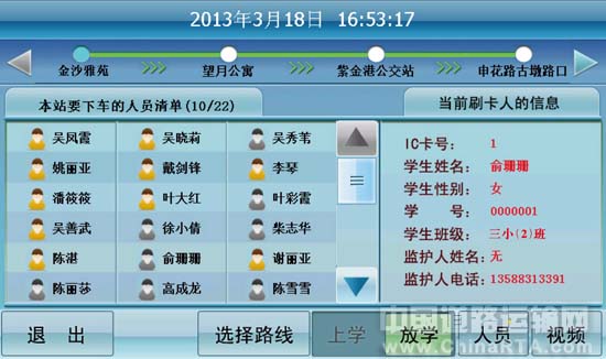 智能化的运营模式极大地提高了校车的安全性, G-BOSⅡ代校车版可实时监控并显示车况数据,全面检查车辆健康,包括发动机水温、蓄电池电压、机油温度、阻塞、机油压力、制动蹄片磨损等,保证车辆故障及时维修,避免校车带病运行,消除安全隐患。并可记录学生和照管人员上车、下车、到校、离校等实时乘坐信息,及时统计每个停靠点的上下学生人数,学生家长可收到系统发送的孩子乘车信息,随时掌控孩子是否安全上车及到达。