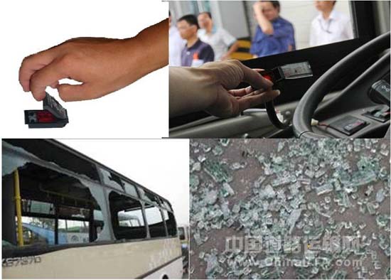 为了乘客快速逃生,宇通客车还推出了比安全锤更胜一筹的安全新技术——玻璃自动爆破装置。自动爆玻器是在车窗上安装的能自动击碎玻璃的装置,使客车在遭遇火灾等紧急情况下,车内人员可以快速打破车窗,从车窗快速逃生。当遭遇险情时,只需打开击窗器开关盖,按压开关按钮,客车上安装了自动爆玻器的玻璃瞬间爆破,车窗玻璃出现无数裂痕,乘客只需用手一推整扇玻璃即会破碎掉落,迅速打开逃生通道,使乘员安全快速撤离。虽然自爆玻璃器冲击力很大,但玻璃并不会呈喷射状爆裂,因此不会伤及乘客安全。目前,该侧窗自爆装置已经在宇通公司校车产品线批量安装,公交车产品线安装技术方案已经验证成熟,可以根据客户要求选装。